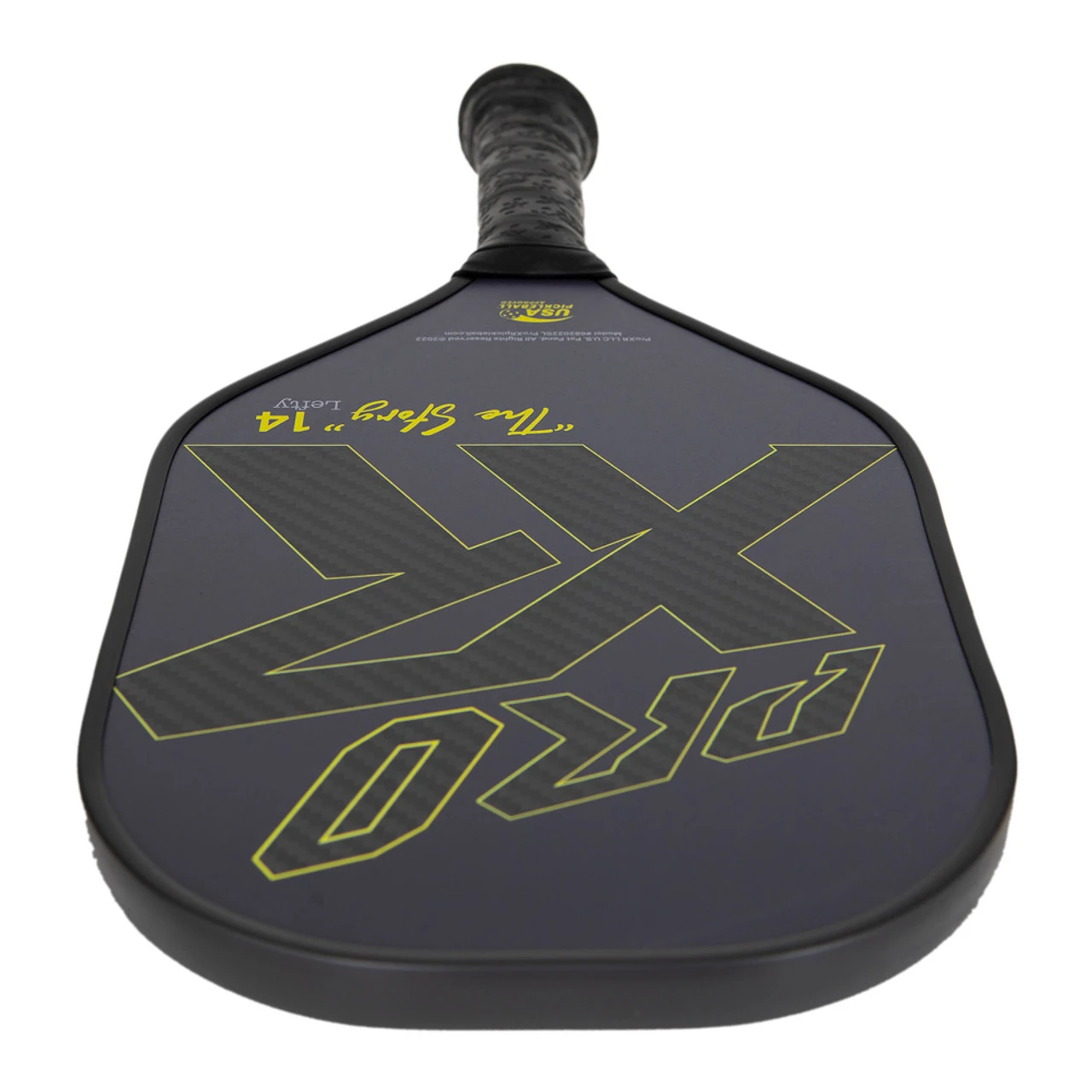 The ProXR “The Story” Lefty 14 Paddle uses an intuitive design to provide you with a paddle that matches your well-rounded game.