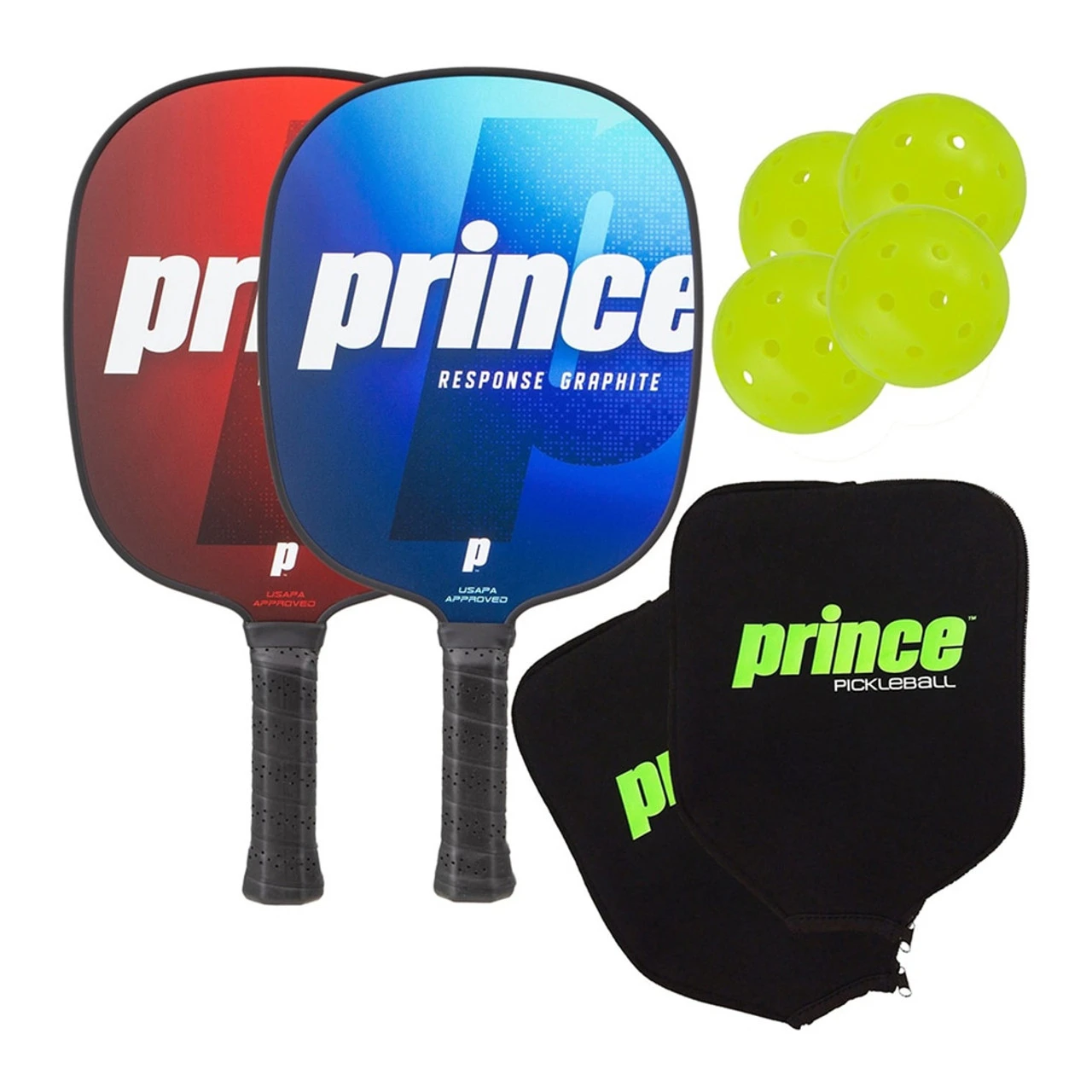 The Response Graphite 2-Paddle Bundle comes with two Prince Response Graphite Paddles, two paddle covers and four outdoor pickleballs. The covers are ideal for keeping your equipment safe during travel or when you need extra cushioning in storage. Outdoor pickleballs are made with smaller holes to prevent wind interference and tough plastic that resists wear.