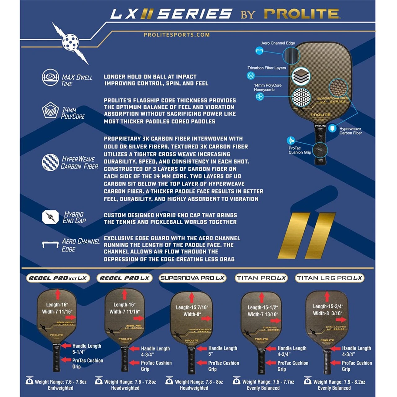 When you prioritize the short game and defense, the Titan LRG Pro Hyperweave LX pickleball paddle from PROLITE gives you everything you need for success, all presented in a thoughtful and eye-catching design.